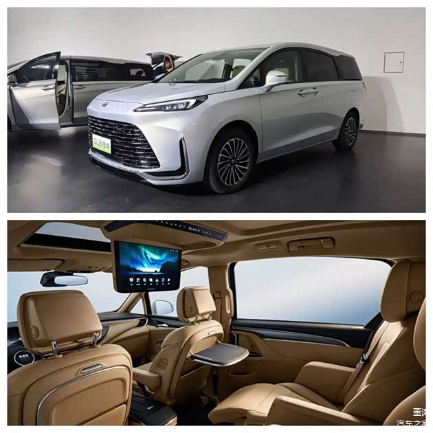 车内仪表台、中控台、车门内饰板大面积使用软材包覆,配备12.3英寸中控双联屏,后排提供15.6英寸吸顶屏,第二排带有小桌板。第二排独立座椅配备航空头枕、腿托、电动调节、加热等功能,长达800mm的地面滑轨能够将座椅后移,实现舒展的大四座模式。动力搭载由1.5T混动发动机+奥特能标准的插混电池+全栈自研P1P3插混电驱单元组成的“真龙”插混系统,百公里亏电油耗6.68L,综合续航1,420km。
