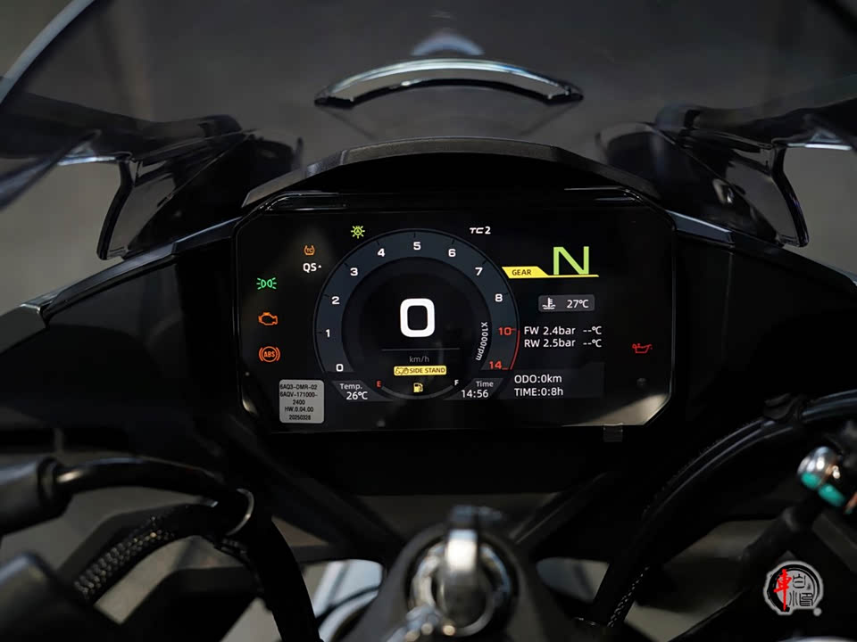449cc双缸水冷发动机,最大功率38kW/9500rpm,扭矩40N·m/7750rpm,优化曲轴配重后动力响应更敏捷。标配双油门拉线及快速升挡功能。