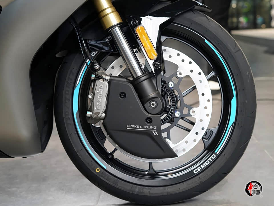 钢制车架,整备质量171kg,单摇臂设计便于维护。795mm座高,14L油箱续航约300km。前37mm倒置减震+多连杆后减震,刹车采用前Brembo四活塞卡钳+320mm单盘,标配ABS及可调TCS。
