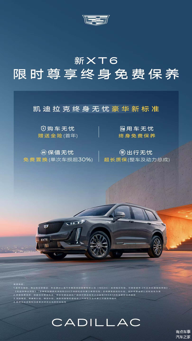 相比起之前的常规试驾,这次试驾获得的信息还是比较丰富的,在以往试驾中我们更关注主观的驾驶和乘坐体验,但背后的设计和科技则往往没能第一时间发现。就像新款凯迪拉克XT6,在中排座椅呈现出舒适豪华的表现背后,不知道花费了工程师多少的心血和时间,也侧面反映出凯迪拉克在造车上还是有诚意,也是十分用心的。另外值得注意的是,即日起到2025年4月20日,下定新XT6车型,可以限时享受包含终身免费保养,首年商业险直送,金身权益等在内的购车权益(详细政策以官方发布信息为准)。官方的限时政策还是比较给力的,尤其是终身免费保养,结合车辆较长的整车和动力系统质保,都将有效地增加用户购买的信心。