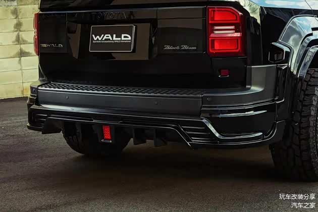 后包围设计了扩散器造型,中间有领航灯,这是运动性能车或跑车一贯的做法,放在普拉多身上,不知道有没有人觉得违和。除此以外,车顶还有跑车常见的尾翼,整个车尾都充满了性能风。