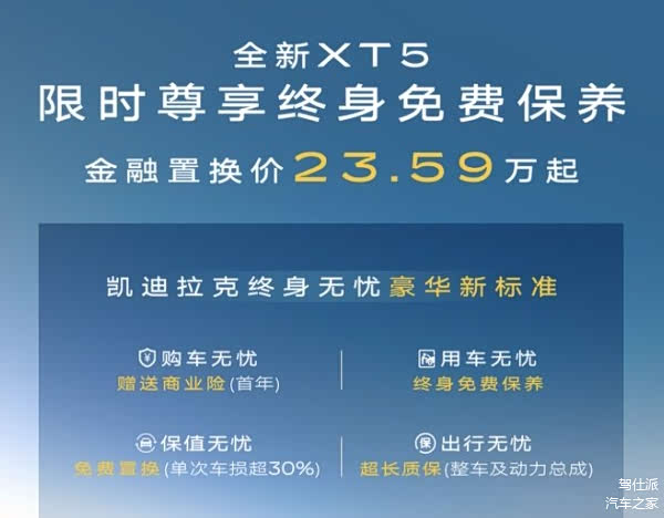 凯迪拉克宣布在4月15日也就是今天开始,推出针对全新XT5和新XT6的限时 “终身无忧”权益活动,只要在4月20号前完成订车并在4月30号前提车就可以享受。其中最有意思的就是一项:免费置换!