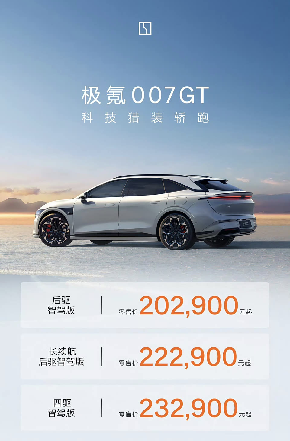 极氪007 GT发布,后驱最低居然只要202900元,顶配四驱版232900元,性价比挺高的。不过,顶配把所有配置都选装后价格也奔着32万去了。但即便是这样,我觉得这价格也不贵,猎装车,这个配置和性能,没啥毛病。