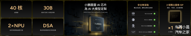 为匹配高阶AI智驾的算力需求,小鹏汽车全栈自研体系的核心技术成果——小鹏图灵AI芯片,专为大模型定制,自研神经网络处理大脑、单颗最高可跑30B(300亿)参数量的本地模型,算力是现有芯片的三倍,将于2025年第二季度在中国内地率先量产上车。