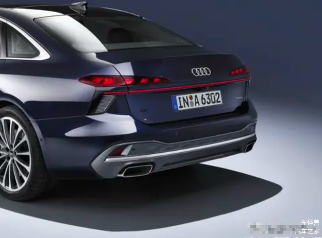 全新的奥迪A6轿车在尾部维持了三厢轿车的设计风格,尾灯则是分体式的,由两侧的间断式灯组和中间的贯穿式线形灯带组合而成。两侧的灯组也支持多种图形样式的切换,这与目前在售的奥迪A6L有着显著的不同。此外,这款新车配备了黑色的下包围和镀铬装饰条,还新增了双边共双出式的矩形“真排气筒”,这与现有车型的隐藏式设计有所不同。