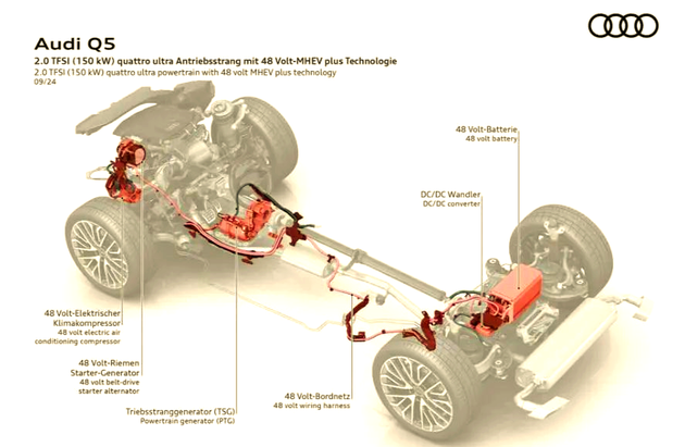 动力方面,奥迪Q5L也将会像海外车型那样,在动力上换载EA888 Evo5发动机,并完成了7速S-tronic变速箱优化提升,与此前申报的奥迪A5L不同,它将会得到更高功率的EA888,比起海外的150kW版本,其最大功率有望提升至200kW(272Ps)。更重要的是,车辆会搭载以P0+P3电机组成的MHEV Plus 48V轻混系统增强版,P0电机用于启停优化,而P3电机则将带来额外的18kW(24Ps)与230N·m,从而实现低至6.8L/100km的综合油耗。