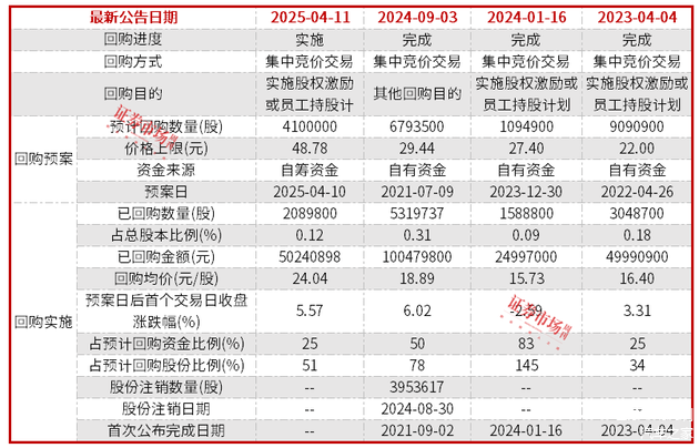 事实上,2021年至今,东山精密已发起和实施4次股票回购(见表2)。其中,2021年股票回购的部分股票在2024年进行了注销,注销股份数量为3953617股,占注销前公司总股本的0.23%。