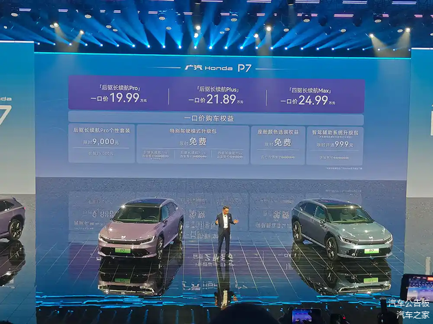 4月15日, 广汽本田P7正式上市了。新车共推出3款车型,售价区间为19.99-24.99万元。据悉,新车定位纯电中型SUV,并且有两驱和四驱可选。此外,新车还搭载了Honda SENSING 360+高阶智驾系统和可变阻尼减振器(官方称为“ADS自适应减震系统”)。至于新车到底如何,我们接着看下去。