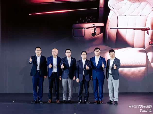 【嘉宾合影:广汽集团产品本部M8系列产品 总经理 童伟(左一)、华为智能汽车解决方案BU 广汽系统部总经理 江城(左二)、广汽集团执委会委员、品牌营销领域 负责人 黄永强(左三)、华为智能汽车解决方案BU CEO 靳玉志(右三)、广汽集团传祺营销本部 负责人 郭百迅(右二)、华为智能汽车解决方案BU Marketing与销售服务部 副总裁 程秋涛(右一)】
