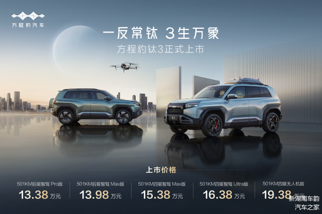 SUV市场闯入一匹实力超强劲的黑马!4月16日,比亚迪方程豹 钛3正式上市,共计5个版本,售价13.38万起,并提供至高5500元的金融贴息政策,支持“0首付”“0利息”“0月供”的多重金融购车方案,以及5大超值购车权益,解锁科技潮玩新生活。