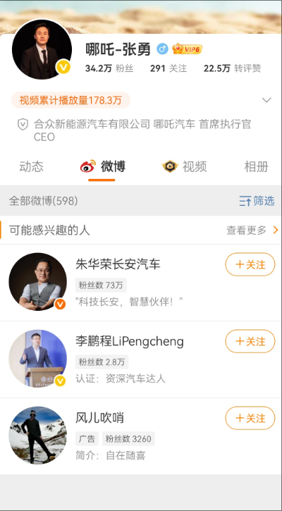 哪吒CEO原张勇隐藏了自己的微博内容,这是要切割了,前几天不是还说在融资