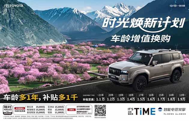在“时光焕新计划”中,一汽丰田针对普拉多、 皇冠陆放、格瑞维亚、亚洲龙、荣放、锐放等核心车型设置了梯度补贴政策。其中,置换皇冠陆放叠加国补最高可享30000元综合补贴,亚洲龙叠加国补置换补贴最高达30000元,其他车型综合补贴力度从15000元至27000元不等。值得一提的是,该计划首创了“车龄增值补贴”机制,即基础补贴随车龄每年递增1000元,叠加国家补贴形成双重保障。这一机制不仅让用户能够享受到实实在在的优惠,更让他们感受到了时间的价值——车龄越长,补贴越高,真正实现了“一车传三代,置换趁现在”。