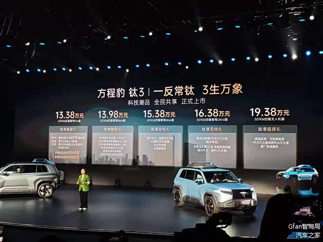 4月16日,比亚迪旗下个性化品牌方程豹科技携全新潮品SUV 钛3闪耀登场,正式开启汽车科技潮流的新篇章。此次钛3共推出5个版本,起售价仅13.38万,同时还带来了极具吸引力的金融贴息政策和5大购车权益,真正实现了“科技潮品,全民共享”。