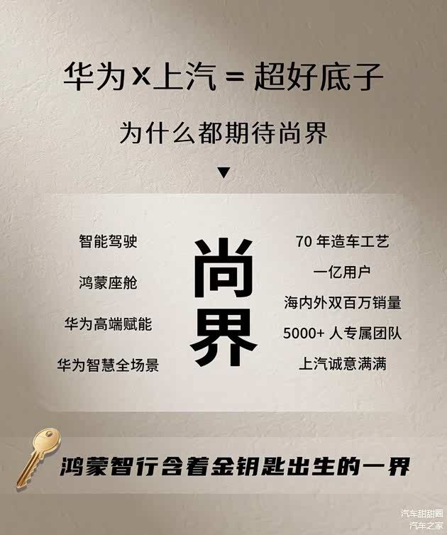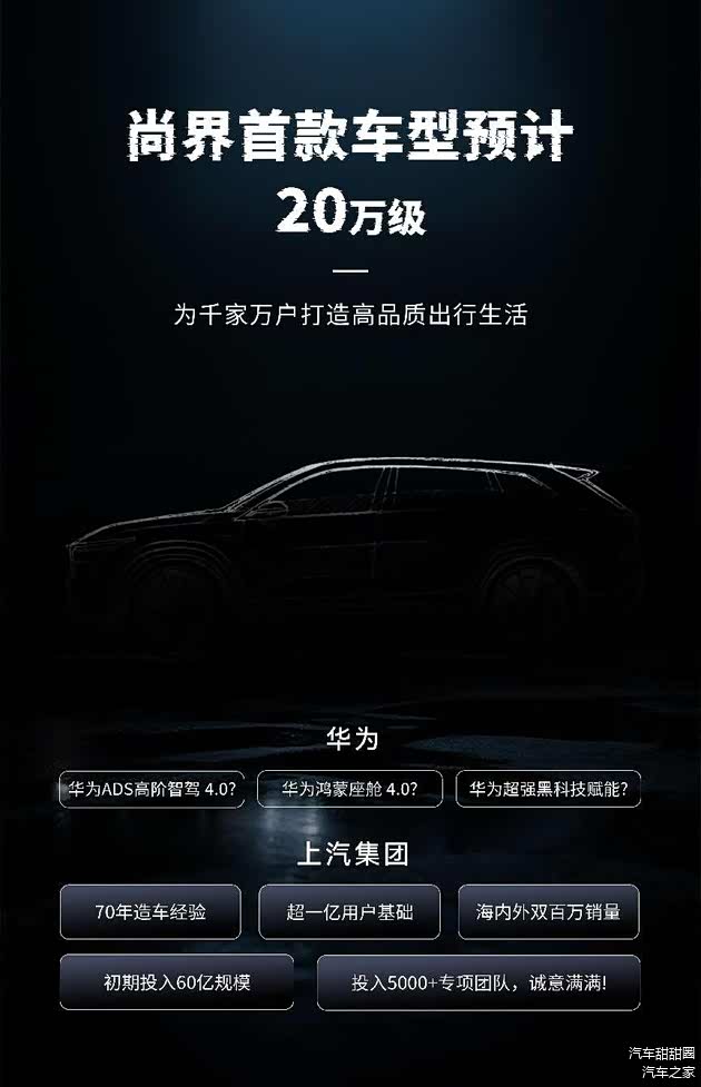 据悉,尚界由华为上汽联合开发,不是简单跨界合作,是全面融合,是品质 All in。为用户造好车是华为和上汽一致的目标,华为上汽联合开发的尚界,核心竞争力就在于高品质。