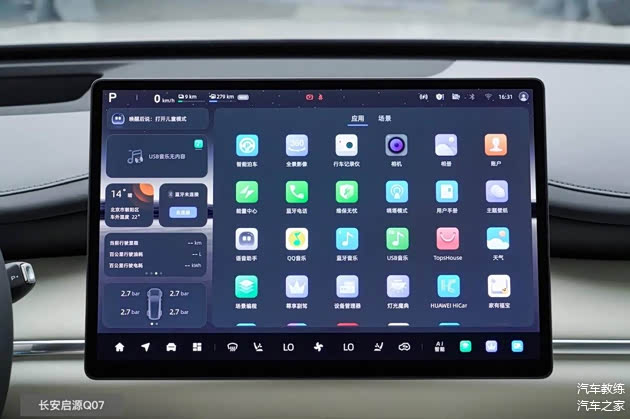 我们都说了“智驾平权”,就先来看车辆的智能。两台车在智能这方面真可以说是针尖对麦芒,宋L通过智电融合的电子架构给到了高阶版DiLink智能座舱,长安启源Q07就用了SDA天枢架构+AI天枢大模型来支持天域座舱,而且两套智舱都有多屏联动、实现了多区智能语音交互、能通过应用商店进行丰富拓展。
