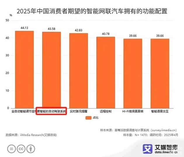 艾媒咨询《2025年中国智能网联汽车消费行为调查数据》中,“更智能的自动驾驶系统”成为中国消费者最期望拥有的功能配置之一;