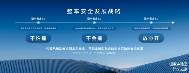 除了智驾平权,消费者另一个同样关注的莫过于“安全”,尤其是新能源和智驾的普及,也为用户的安全增添多几分复杂性。上汽也认为,安全才是平权的底线!为此,上汽正式发布了整车安全3.0技术,从1.0时代的“不怕撞”,2.0时代的“不会撞”,进化至3.0时代的“放心开”。通过智驾强大的算力冗余和众多传感之间的协同,加上第二代全栈线控底盘和VMC车辆运动控制实现主动安全防护、主动规避、大幅提升机械极限,减少失控风险。再加上工艺越加严苛的车身被动结构保护,主被动融合升级,给车上每一位成员都能带来更好的保护。