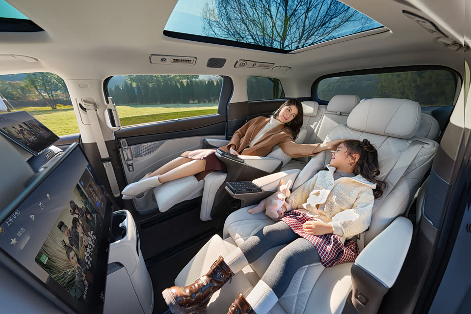 无论是家庭场景还是商务需求,抑或是对于驾驶员而言的的辅助驾驶,腾势D9确实有足够用心的设计,第二排不必多说,诸如零重力座椅,电动调节腿托、座椅按摩或是车机娱乐,如今都算是标配,包括前排座椅通风加热记忆功能、主驾头枕音响、或是更舒适,更方便出入的三排座椅,在空间布局和舒适性配置上显然更平权,换句话说,它可以取悦所有人。