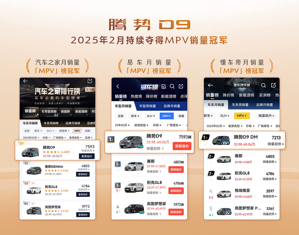 早在去年,中大型商务MPV市场的头牌热门车型就不再是GL8了,到了今年,#腾势D9#已经连续三个月成为MPV销量榜第一,哪怕御三家的数据口径不太一样,也都是无可争议的第一,甚至快要破万了。#宜商宜家就选腾势D9##MPV 王者腾势 D9 再进化#