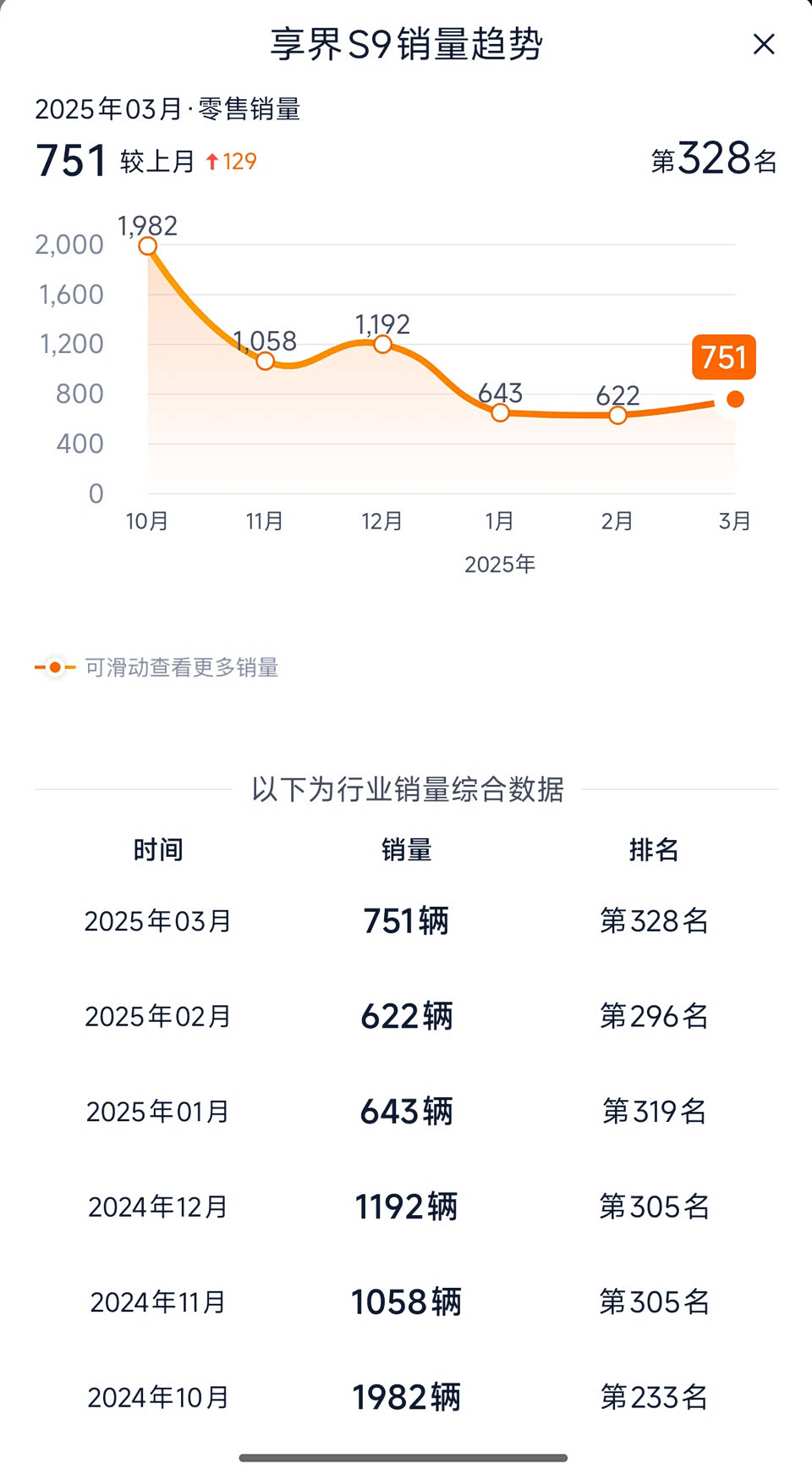 应该说,享界S9是目前已经上市的华为三界中销量最差的,8个月累计销量都没有过万。