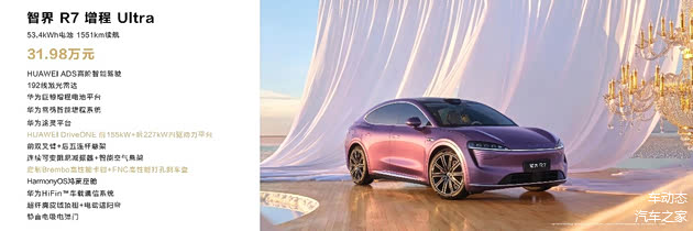 4月17日智界品牌之夜上,智界R7增程推出新版本,带来新53.4kWh大电池和四驱 Ultra版,纯电续航、综合续航和操控性远超理想L6的表现,不仅满足了年轻用户对极致驾控的追求,更以“油电双优”的革命性体验彻底打破了传统增程的弊端。