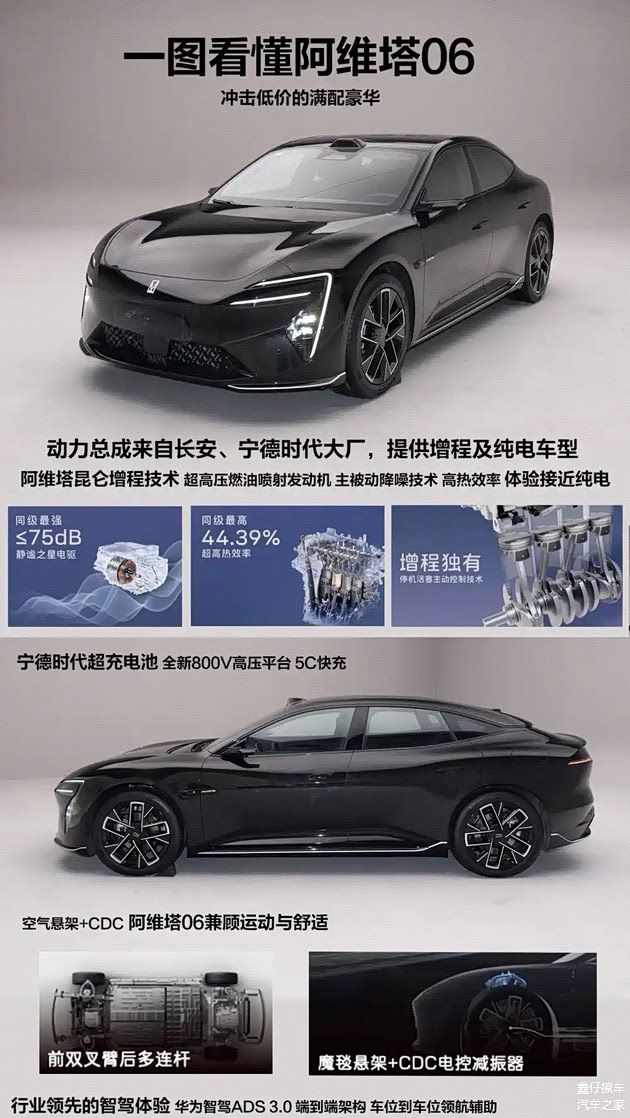 总而言之,阿维塔06在传承品牌设计理念和技术优势的基础上,通过更具运动感的设计和更具竞争力的价格,试图在新能源汽车市场中赢得更多年轻消费者的青睐。其主要优势在于前卫的设计、全面的配置、与宁德时代和华为的深度合作以及提供的纯电和增程两种动力选择。尤其值得关注的是,华为乾崑ADS 3.0智能驾驶系统的搭载,有望在智能化体验方面为阿维塔06带来显著的竞争优势。此外,依托长安SDA 2.0平台进行资源共享,也将有助于阿维塔06控制成本,提升产品竞争力。