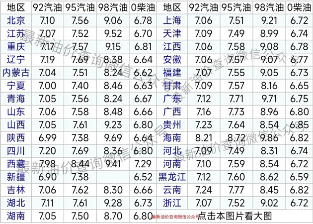 国内成品油最新价格