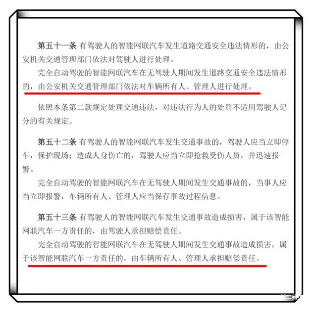 按惯性思维,自动驾驶发生事故理应由制造商承担责任,但以上条例中车辆的所有者依旧是第一责任方。如果自动驾驶开放,我想多数车主是不能接受这一条的。