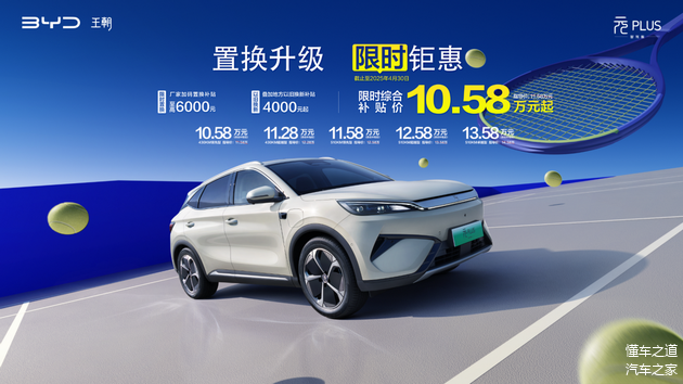 【懂车之道 资讯】近日,懂车之道获悉,第二代元PLUS智驾版推出置换补贴政策:即日起至4月30日,凡购买第二代元PLUS智驾版的消费者,均可享受厂补至高6000元的置换补贴,叠加最低4000元的地方以旧换新补贴,限时综合补贴10.58万元起!