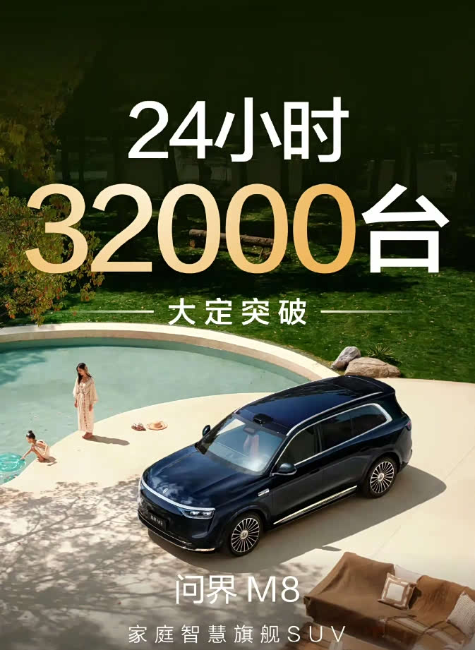 问界M8赚翻了,也难怪余承东会迅速发帖,24小时就大定突破32000台。 M8将会在4月20日开始交付,现在各大门店已经能看到这个车的现车,而且还有5月19日下定能享受首销期的权益。 现在就要看交付以后的数字。从大定的数字来看,这车必然相当火爆。若每个月能交付2万辆的话,那就将成为现象级别的车型。 我在当地门店试过这款车,感觉除了因为包裹性差了些,导致乘坐舒适度不如问界M9之外,但在内饰以及颜值方面一点都不会逊色于问界M9。