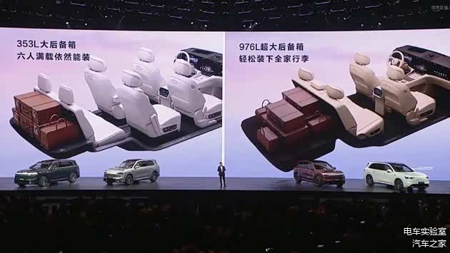 5 座车型的后备箱容积高达 976L,6 座版本的后备箱容积则达到了 353L,并且在后备箱的下沉位置,鸿蒙智行分别为其设置了一处 110L、39L 容积的储物暗格,进一步提升了储物表现。