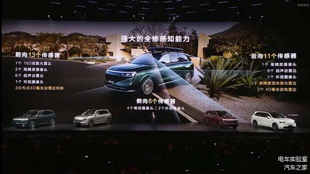 虽然没有在侧向新增高精度固态雷达,但问界 M8 在前向、后向分别补充了 3 分布式 4D 毫米波雷达以及 1 个高精度固态激光雷达,这能够帮助问界 M8 更好地在雨雾天气下识别障碍以及对后向的高低差、异形障碍物有着更强的识别能力。