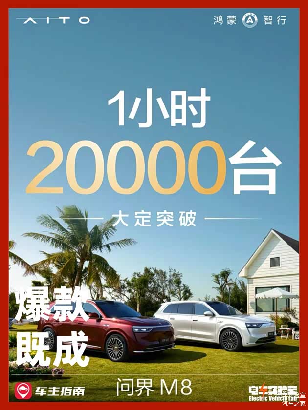 刚刚,电车实验室获悉:上市 1 小时,问界 M8 的大定订单已经超过了 2 万台,王炸爆品新车既成现实。