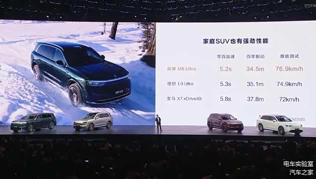 满血版途灵平台上车,采用前双叉臂+后五连杆结构,全系标配双腔闭式空悬,问界 M8 的最快零百加速可以达到 5.2 秒,零百制动仅为 34.5 米,掉头半径仅为 5.9 米,三项数据均优于同尺寸竞品理想 L9 Ultra 以及宝马 X7。