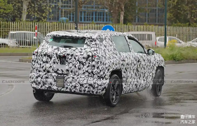 车侧线条较为紧凑,车顶曲线略向尾部倾斜,搭配熏黑五辐式轮圈,车身整体呈现稳重造型。车尾则覆盖厚重伪装,但可见纵向排列的尾灯组和集成式扰流板设计,同时配有后雨刷,提升日常驾驶实用性。