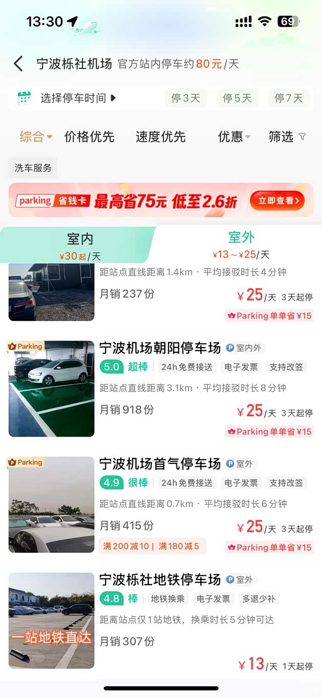 好在有“小强停车”平台给栎社机场附近的司机们支了个省钱的招儿,每天停车只要13元,比官方的80元便宜了67元,省下的钱都能吃顿海鲜大餐了。更带劲的是,您只需微信搜索【小强停车】在上面查看附近停车场,输个邀请码“58”,还能再拿一张38元的停车券,算下来一天的停车费跟买瓶水差不多。这些停车场不光收费低,还安排了接送的小车,行李再多也不用自己拖,直接送到航站楼门口。甭管是赶早班飞机,还是出去玩几天,小强停车都能让你的车停得省心又省钱。