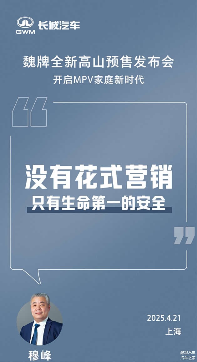 在当前新能源汽车市场快速发展的背景下,消费者对车辆性能的期待值持续攀升。然而,在追求百公里加速、智能驾驶与超长续航的同时,安全性是否被忽视了?魏牌全新高山预售发布会给出的答案是“没有花式营销,只有生命第一的安全”。长城汽车总裁穆峰强调,对于即将于4月21日亮相的这款全场景高阶智驾新能源MPV来说,安全永远是第一优先级。