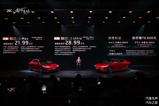 全新智己L6推出三大配置版本,预售权益价格区间为21.99万元~28.99万元。