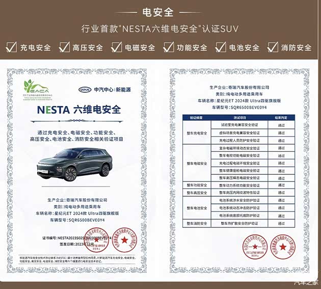 2025款星纪元ET不仅是“NESTA六维电安全”技术验证的佼佼者,还荣获了全球首个增程车型行车控制安全认证、中汽中心整车功能安全产品认证及欧盟车联网安全管理双认证。