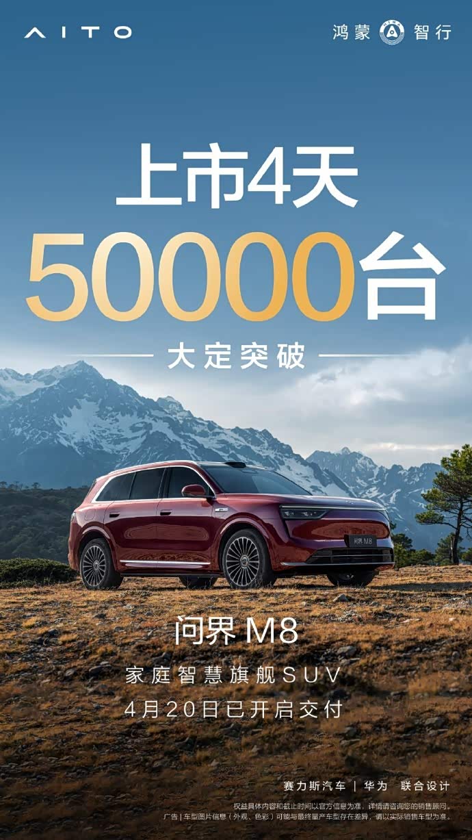 4天,50000大定,40万价位的国产新能源。buff叠满了,M8这一波又是乱杀。不过,总感觉,现在还不是最狠的。这几天试驾车可能还不够,很多人得排队试驾,周末没排上可能平时没那么多时间。而接下来五一假期了,不如让我们一起五一后再看看官方会不会公布新的成绩。