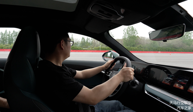 我在场地上全油门加速,发动机扭矩滤波很柔和,没有强烈的推背感。因为它是7挡干式双离合,做了变速箱保护逻辑,无法憋转速弹射起步,所以起步不快,但后段加速是有的,尤其涡轮增压工作后,加速度有一个明显提升,0-100加速8.5s左右(官方8.9s),对于一辆功率110kW的1.4T而言,这个加速成绩非常突出。