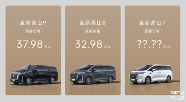 4月21日,在上海国际车展来临之际,魏牌高山开启预售,高山9售价37.98万元,高山8售价32.98万元,同时还有现金膨胀礼、购车无忧礼、智享无忧礼、充电无忧礼等购车权益。此次发布会给高山7留了个悬念,未公布售价,后期将采用用户参与,共创定价的逻辑发布,敬请期待!