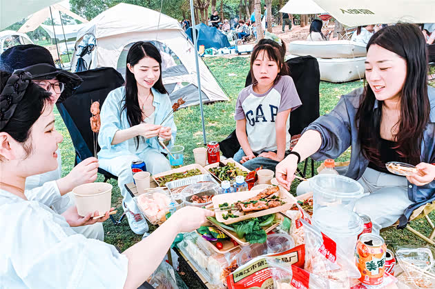全味虾球,凉拌黄瓜,凉拌毛豆,孜然鸡翅,孜然牛肉.....车友会露营季太开心了吧?