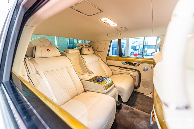 红旗国礼的内饰设计融合了中华传统文化与现代豪华,采用平直的贯穿式中控台,辅以非遗大漆和刺绣工艺,营造出极具文化底蕴的尊贵氛围. 内饰材质选用顶级真皮和木纹饰板,座椅支持多向电动调节、加热和通风功能,确保乘客的舒适性. 车内空间布局为4座设计,注重后排乘客的私密性和奢华体验,配备独立多媒体系统和氛围灯,满足高端用户对个性化乘坐环境的需求. 此外,车内NVH(噪声、振动与声振粗糙度)性能经过精细调校,高速行驶时依然保持安静的座舱环境.