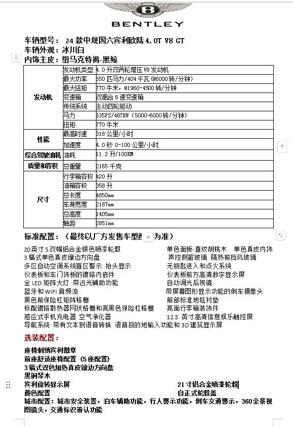 24款 宾利 欧陆 4.0T GT V8 港口现车
