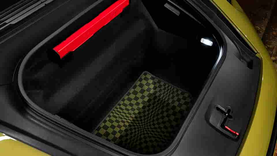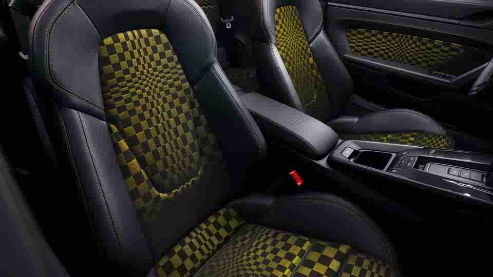 车内方面,座椅中心、手套箱及前备厢垫都使用了Pasha图案,旨在模仿风中飘扬的方格旗。Pasha图案由织品和绒线组合而成,使用黑色和深橄榄绿双色调。此外,用户还可选装Pasha风格座椅靠背及仪表板装饰件。