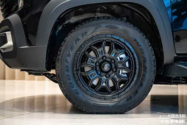 细节方面,猎手K50配备4颗车顶探照组合灯光,可满足更多场景照明需求,让夜间林道穿越更安全,露营野钓更有趣。配备固特异AT全地形越野轮胎,在应对非铺装路面将有更好表现。
