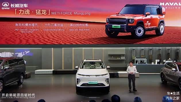 与枭龙MAX的“全民四驱”理念呼应,哈弗猛龙Hi4则以硬派越野定位亮相。新车基于现款猛龙升级,搭载1.5T发动机+Hi4智能四驱混动系统,最大功率115kW,匹配镍钴锰酸锂电池组,兼顾动力与环保需求。