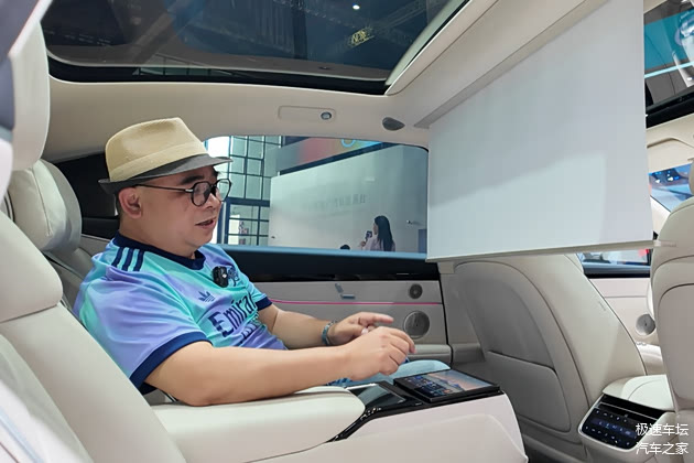 后排扶手上的控制屏,除了调节后排座椅的加热通风按摩等各项功能之外,还可以控制后排32英寸激光投影巨幕的升降,半躺着在车上看看投影,真有“头等舱”的既视感。25个扬声器的华为音响,立体声效很好,音质也很不错。工作、忙碌一天之后,在车上听听音乐,相当惬意。