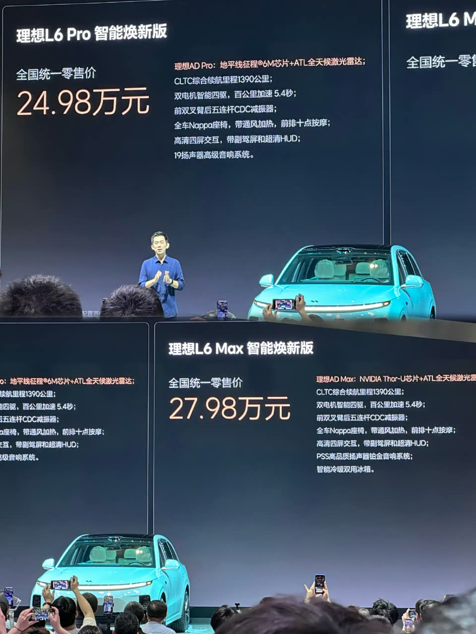 理想L6智能焕新版,新在哪里 外观内饰没变化,新增天青色车漆和全新黑棕双色内饰 辅助驾驶硬件层面,全系标配了更小巧的ATL全天候激光雷达,激光雷达体积减少了60%,功耗降低了55% AD Pro车型从地平线J5芯片升级到地平线J6M芯片 AD Max车型从英伟达双Orin-X芯片升级到单Thor-U芯片,算力达到了700TOPS 车企目前方向都是智驾硬件都在全面标配,理想还在坚持用智驾硬件区分高低配